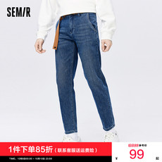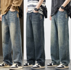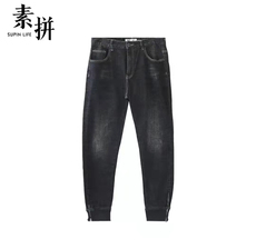 素拼男装新款牛仔裤春秋潮牌高街水洗小脚拉链老爹中腰裤丹宁裤子