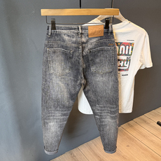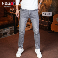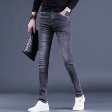 轻奢牛仔裤男2023秋冬新款灰色修身小脚弹力百搭男士潮流时尚裤子