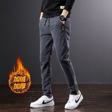 加绒加厚牛仔裤男冬季2025新款潮牌韩版蓝色宽松小脚裤秋冬季长裤