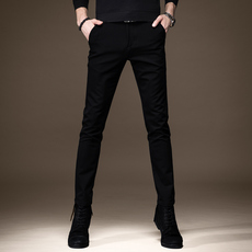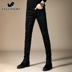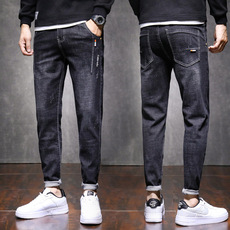 秋冬季简约牛仔裤男新款款修身小脚韩版休闲潮流直筒黑色裤1001n