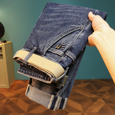 牛仔裤男秋冬季2025新款潮牌修身直筒小脚裤潮流复古加绒青年长裤