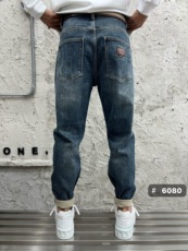 秋冬新款松紧腰系绳牛仔裤男士韩版潮牌痞帅哈伦裤拼接阔腿小脚裤