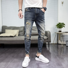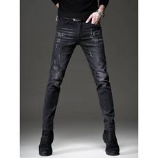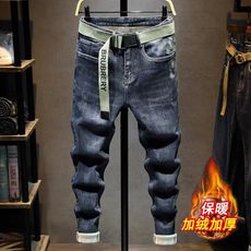 现货磨毛加厚秋冬新款男士修身小脚牛仔长裤男潮流破洞青年牛仔裤
