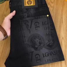 高端奢侈品一线大牌纯黑色牛仔裤男加绒加厚新款修身小脚休闲裤子