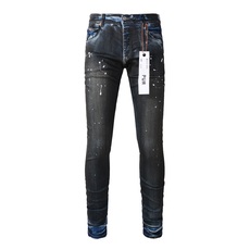 潮牌PUR秋季新款黑色水洗磨白泼墨涂鸦牛仔裤男士弹力修身小脚裤