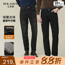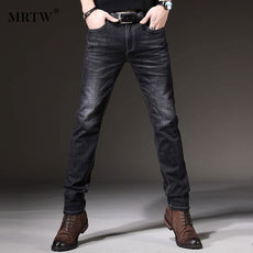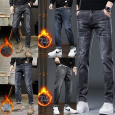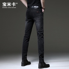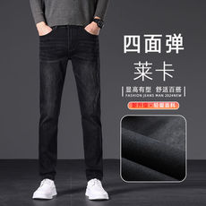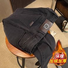 2024新款男士牛仔裤秋冬款修身小脚黑色加厚直筒春秋款加绒长裤子
