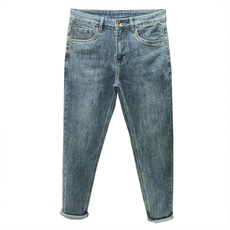 水洗复古秋季九分牛仔裤男修身小直筒小脚加绒高端冬休闲弹力新款