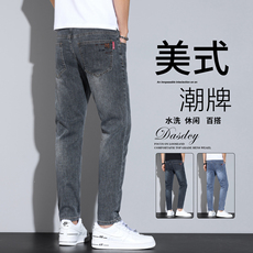 裤子男春秋季新款美式高街男士小脚修身牛仔裤男百搭弹力长裤男装