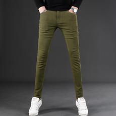 冬季新款绿韩版水洗男士牛仔裤修身小脚弹力时尚休闲百搭长裤