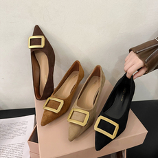 时尚款2025秋季新款尖头小跟高跟鞋女方扣细跟单鞋浅口百搭职业鞋