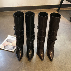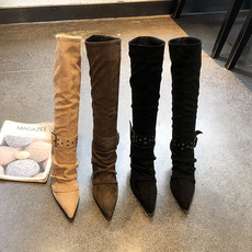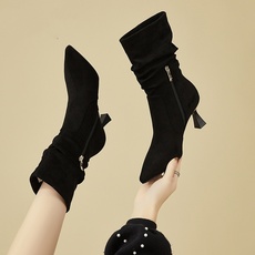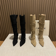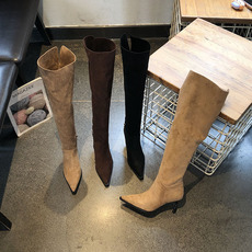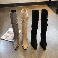 2025秋冬新款尖头绒面细跟长筒靴女不过膝高跟高筒单靴西部靴女靴