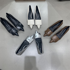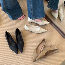 2025年新款法式尖头编织浅口细跟高跟鞋女时尚气质软皮低跟单鞋