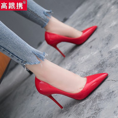 酒红色气质高跟鞋女2025年新款春秋尖头浅口细跟职业工作单鞋女
