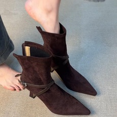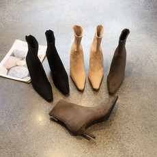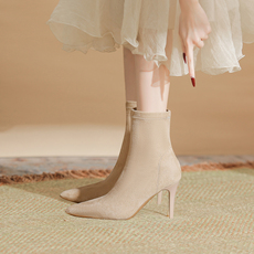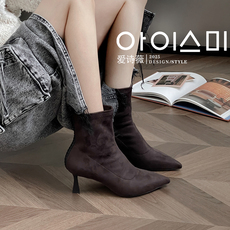 爱诗薇女鞋2025秋冬新款跑步高跟鞋尖头细跟短筒靴时装靴弹力靴