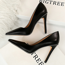 断码处理女鞋2025秋季新款优雅细跟纯色简约尖头浅口高跟鞋女单鞋
