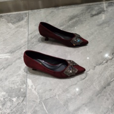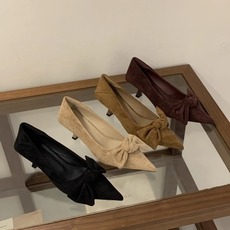 2025年秋季新款法式尖头蝴蝶结绒面细跟高跟鞋女气质时尚浅口单鞋