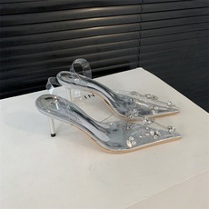 细跟水钻透明女包头时装凉鞋2024新款性感尖头高跟鞋35-39码