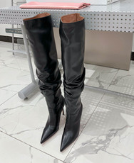 欧美时装靴女2023新款显瘦尖头高筒谮皱过膝长靴细跟高跟瘦瘦靴子