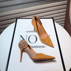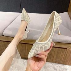 水钻珍珠花朵单鞋女2025年新款高跟细跟中跟粗跟尖头时尚甜美鞋子
