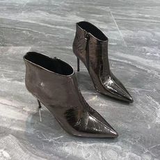 欧洲站女秋冬季新款欧货侧拉链胎皮面细跟尖头高跟时尚短靴