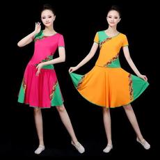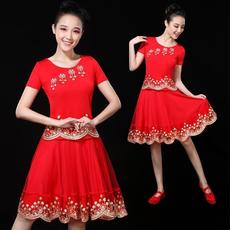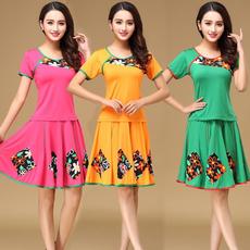 广场舞服装新款套装民族舞服女士圆领短袖大摆裙中国风舞蹈演出服