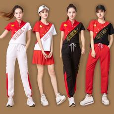 日本品质印字夏秋广场舞服装新款舞台团体健身操佳木斯运动套装