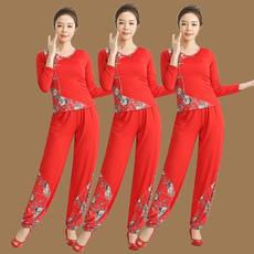 特卖杨丽萍广场舞服装新款套装女春夏长袖棉裤子舞蹈服运动团体健