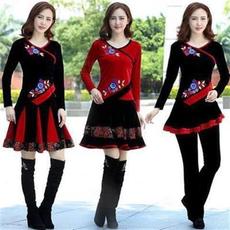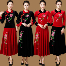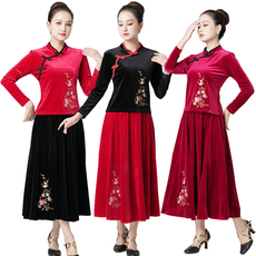 洛神广场舞服装新款套装秋冬金丝绒民族刺绣舞蹈服韩国绒团队跳舞