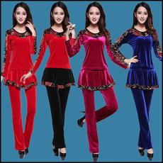 秋冬广场舞服装新款套装丝绒长袖舞蹈服装中老年跳舞衣服表演服