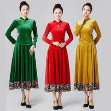 民族广场舞服装套装舞蹈演出服藏族大摆裙长裙女表演衣春夏季新款