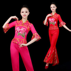 速发新款广场舞服装 新款套装 秧歌舞绣花跳舞灯笼裤 腰鼓表演服