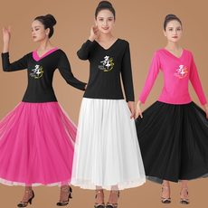 广场舞服装新款套装莫代尔舞蹈衣服网纱大摆裙子中老年跳舞演出服