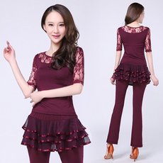 越野营果果吉特巴上衣新款镶钻中袖拉丁舞舞蹈服广场舞服装女套装