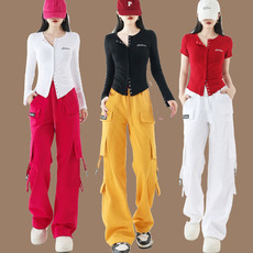 广场舞服装新款套装春夏长短袖工装裤时尚曳步舞健身操跳舞衣服女