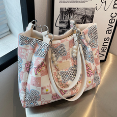 日系格子帆布包包女春夏2025新款韩版大容量单肩通勤包上课托特包
