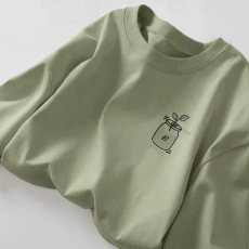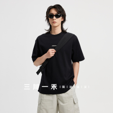 三川一禾男士植绒字母圆领短袖T恤夏季新款宽松百搭时尚休闲上衣
