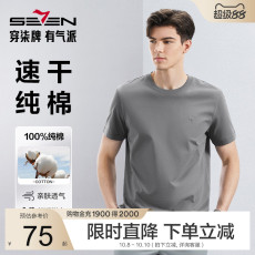 【速干】柒牌短袖t恤男士2025夏季新款时尚休闲纯棉山系圆领上衣