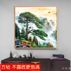 迎客松山水风景画2025清新款5D水晶钻石画满钻客厅贴钻十字绣卧室