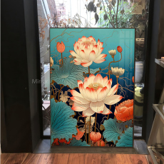 好运莲莲钻石画满钻2024新款客厅卧室治愈荷花高级手工点贴砖带框