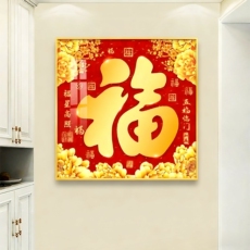 带框钻石画满钻魔方钻手工贴钻绣新中式客厅玄关金色福字牡丹新款