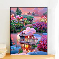 粉色梦幻城堡风景钻石画2025新款手工5d点贴钻十字绣客厅卧室满钻