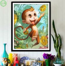 2025新款卡通动物钻石画5d小幅儿童卧室点贴钻十字绣生肖猴子满钻
