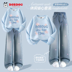 巴布豆女童休闲套装2025新款中大童秋装两件套儿童卫衣阔腿牛仔裤