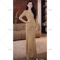 秋冬新款针织显瘦收腰气质长袖连衣裙女轻奢高级感时尚开叉鱼尾裙
