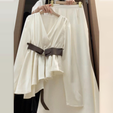2025秋季新款深v连衣裙小众高腰包臀鱼尾裙纯色度假风长裙D3343