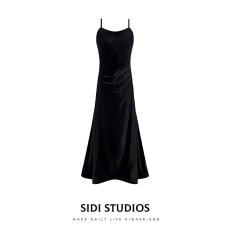 法式小众金丝绒连衣裙女2025年新款秋冬装设计感黑色鱼尾裙中长裙