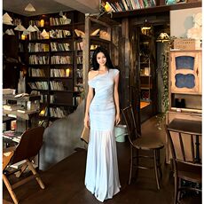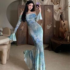 新款法式纯欲性感礼服长裙鱼尾紧身收腰包臀连衣裙女微胖气质长裙