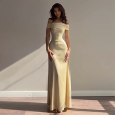 instunning法式气质一字领连衣裙女夏季新款高级感缎面鱼尾长裙子