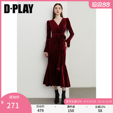 DPLAY2025秋季新款法式红色连衣裙丝绒鱼尾裙长裙厅里厅气连衣裙