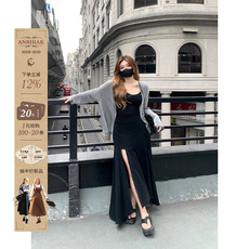【毛晓彤同款】朗姿吊带法式修身气质小黑裙夏新款鱼尾醋酸连衣裙